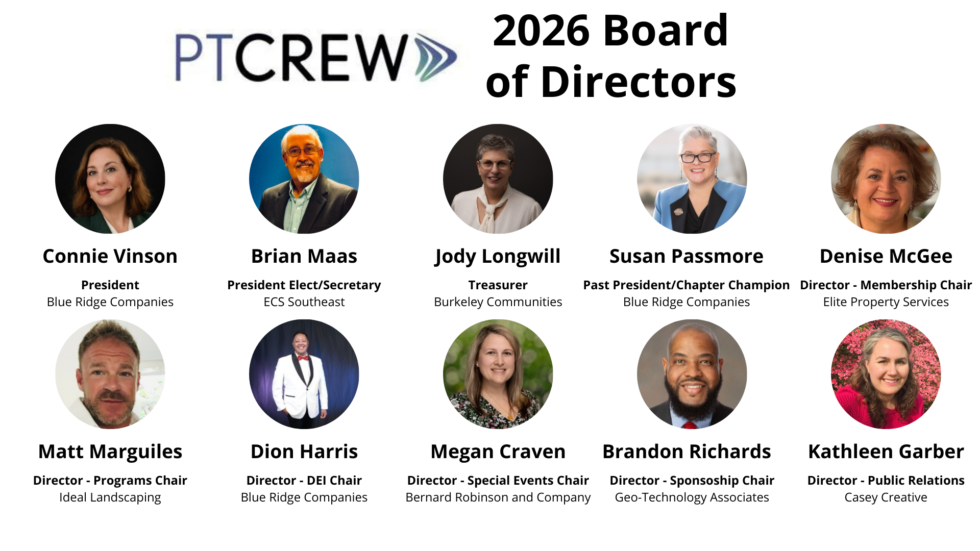 PT CREW is managed by a board of directors that works together to set and accomplish the chapter’s strategic goals—helping to advance the success of women in commercial real estate. Serving on PT CREW’s board of directors is a unique opportunity for leadership and networking among other ambitious men and women working in the commercial real estate field.